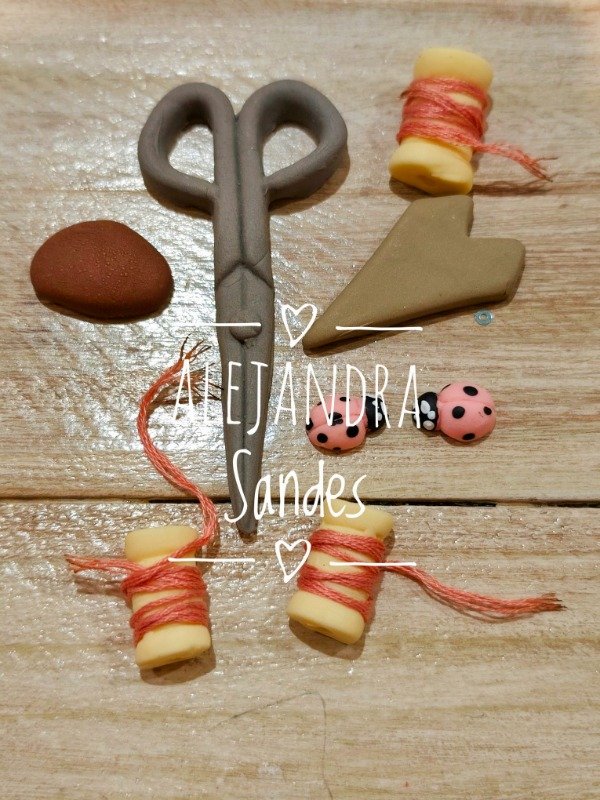2 carreteles de hilo chicos y 1 grande en porcelana fría.